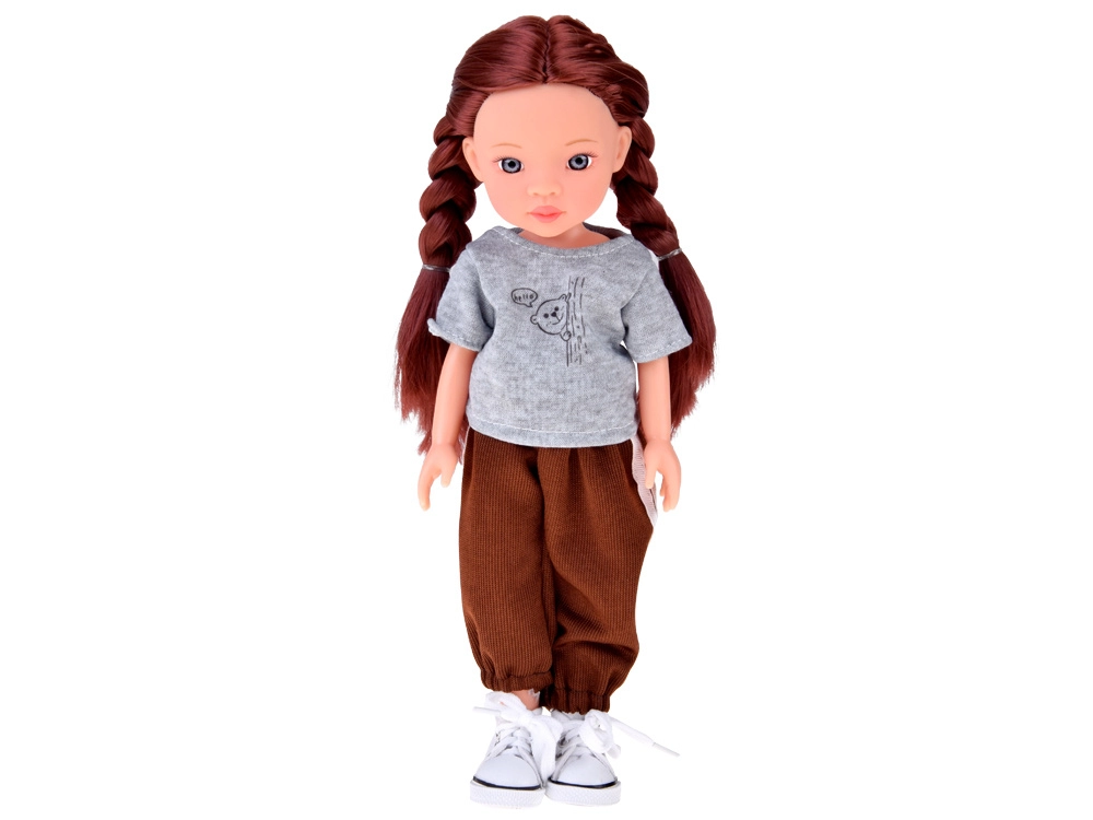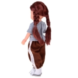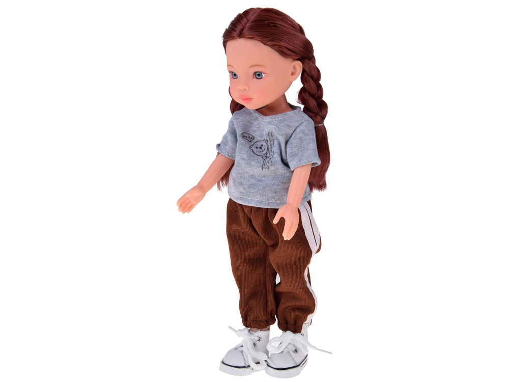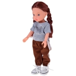 Lutka visine cca 33 cm izrađena je od kvalitetne plastike, a zahvaljujući artikuliranim rukama, nogama i glavi lako se postavlja u poze. Duga, gusta satenska kosa potiče na češljanje, pletenje i stiliziranje. Ležerna siva majica s printom, smeđe trenirke s bijelim lampasima i bijele tenisice upotpunjuju moderan sportski izgled.