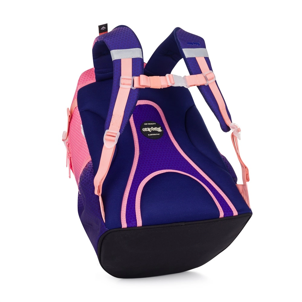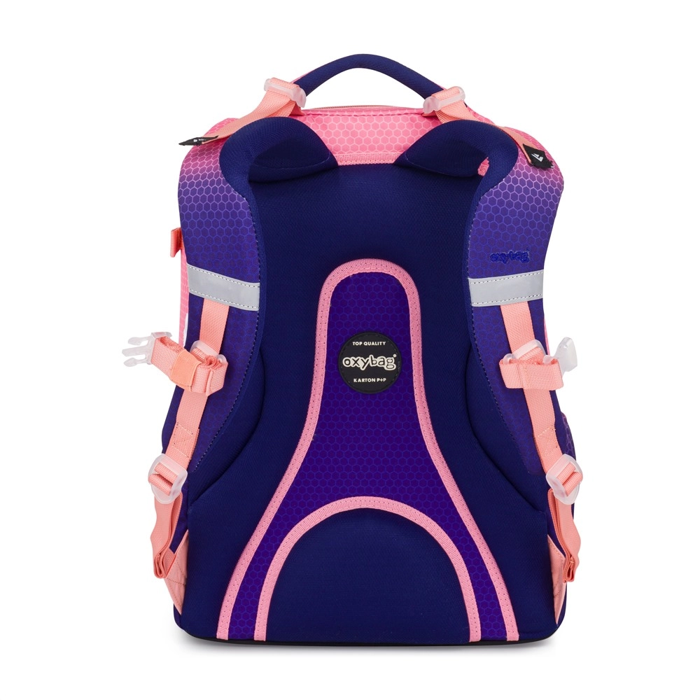 OXY Ombre Apricot je stilska školska torba s glatkim prijelazom boja koja osvaja na prvi pogled, a istovremeno ispunjava zahtjeve za zdravo i sigurno nošenje školskog pribora. Anatomski oblikovan leđni panel, mekane podstavljene naramenice i podesivi prsni remen raspoređuju teret i podupiru pravilno držanje tijela.