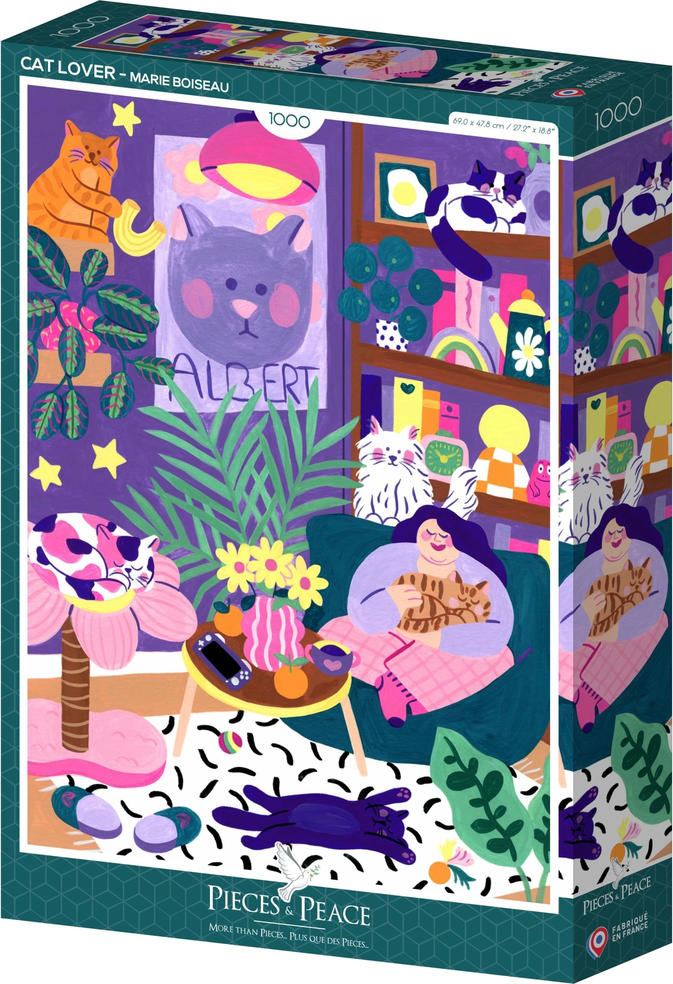 Uronite u svijet mačaka i složite detaljan motiv od 1000 dijelova. Dimenzije sastavljene slike su cca 47,8 × 69 cm, pa će gotovi puzzle lijepo doći do izražaja na zidu ili na polici u okviru.