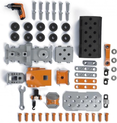 Ovaj robusni kamion u prepoznatljivim bojama BLACK+DECKERa skriva u prikolici praktičnu spremnu kutiju s ručkom koja drži sav alat uredno na okupu. Djeca će obožavati realističnu dječju bušilicu i bogat set nastavaka i dijelova za gradnju.
