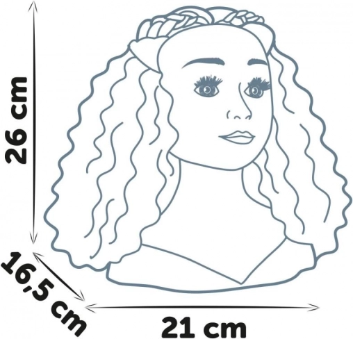Stabilno postolje s prisavcima drži glavu čvrsto na stolu pa se kosa lakše oblikuje. Svih 23 komada pribora lako ćeš pospremiti u tajno skrovište u postolju, kako bi sve uvijek bilo pri ruci i bez nereda. Visina glave 26 cm idealna je za dječje ruke i prve frizerske pokušaje.