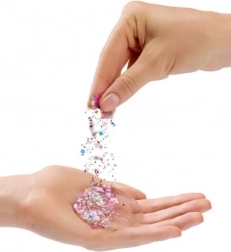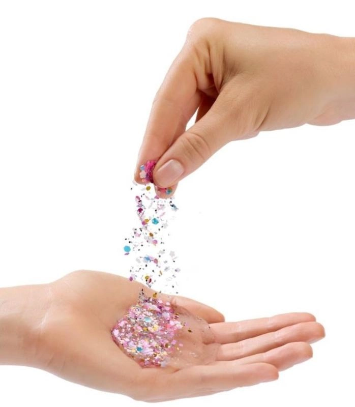 U pakiranju ćeš naći sve što trebaš za kreativnu zabavu: odjeću, visoke cipele, naušnice, paletu šljokica, prozirni sluz i slatkoga čarobnog ljubimca. Kombiniraj različite vrste šljokica, uređuj frizure i ponavljaj cijeli postupak kad god želiš – miješaj, ukrašavaj i igraj se bez ograničenja.