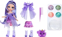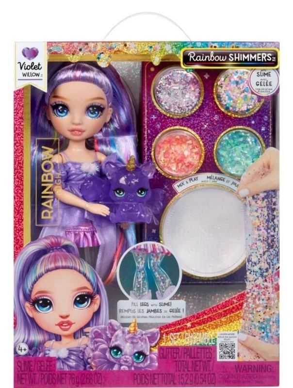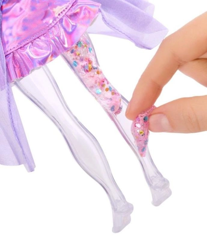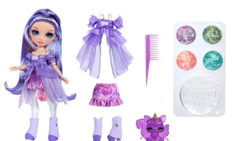 Ova stilska lutka s dugom ljubičastom kosom i upečatljivom odjećom nudi potpuno novi način igre. Pomiješaj sluz s obojenim šljokicama, ispuni njima prozirne dijelove nogu i promatraj kako se izgled Violet odmah mijenja. Zahvaljujući zglobovima, lutku je lako postavljati u poze i stvarati modne scenice.