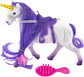 Ovaj elegantni jednorog razveselit će svako dijete koje voli čarobna stvorenja i svijet mašte. Zahvaljujući mekoj, baršunastoj površini i grivi za češljanje mali frizeri uživat će u mnoštvu kreativne zabave. U kompletu su i dodaci za uređivanje grive te sedlo za udobne vožnje u zamišljenom svijetu.