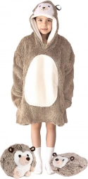 Ova topla dekica s kapuljačom COZY NOXXIEZ u slatkom ježevom stilu spaja udobnost deke i praktičnost hoodice. Unutrašnjost od pahuljastog sherpa flisa i mekani flanel izvana osiguravaju toplinu djeci tijekom gledanja TV-a, igranja i odmora.