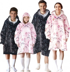 Praktični detalji poput velike kapuljače i prostranog klokan džepa drže glavu i ruke toplima. Dekica-dukserica ima univerzalnu dječju veličinu s duljinom do koljena te je prikladna za djecu od 7 do 12 godina. Jednostavno održavanje u perilici olakšava svakodnevnu upotrebu.