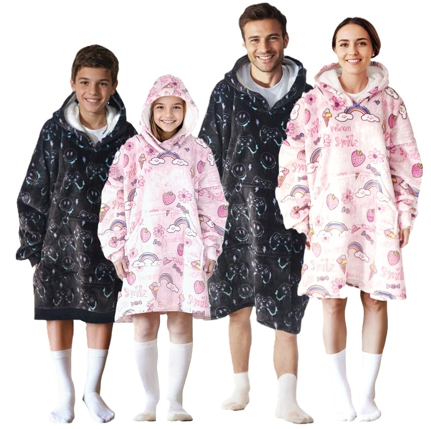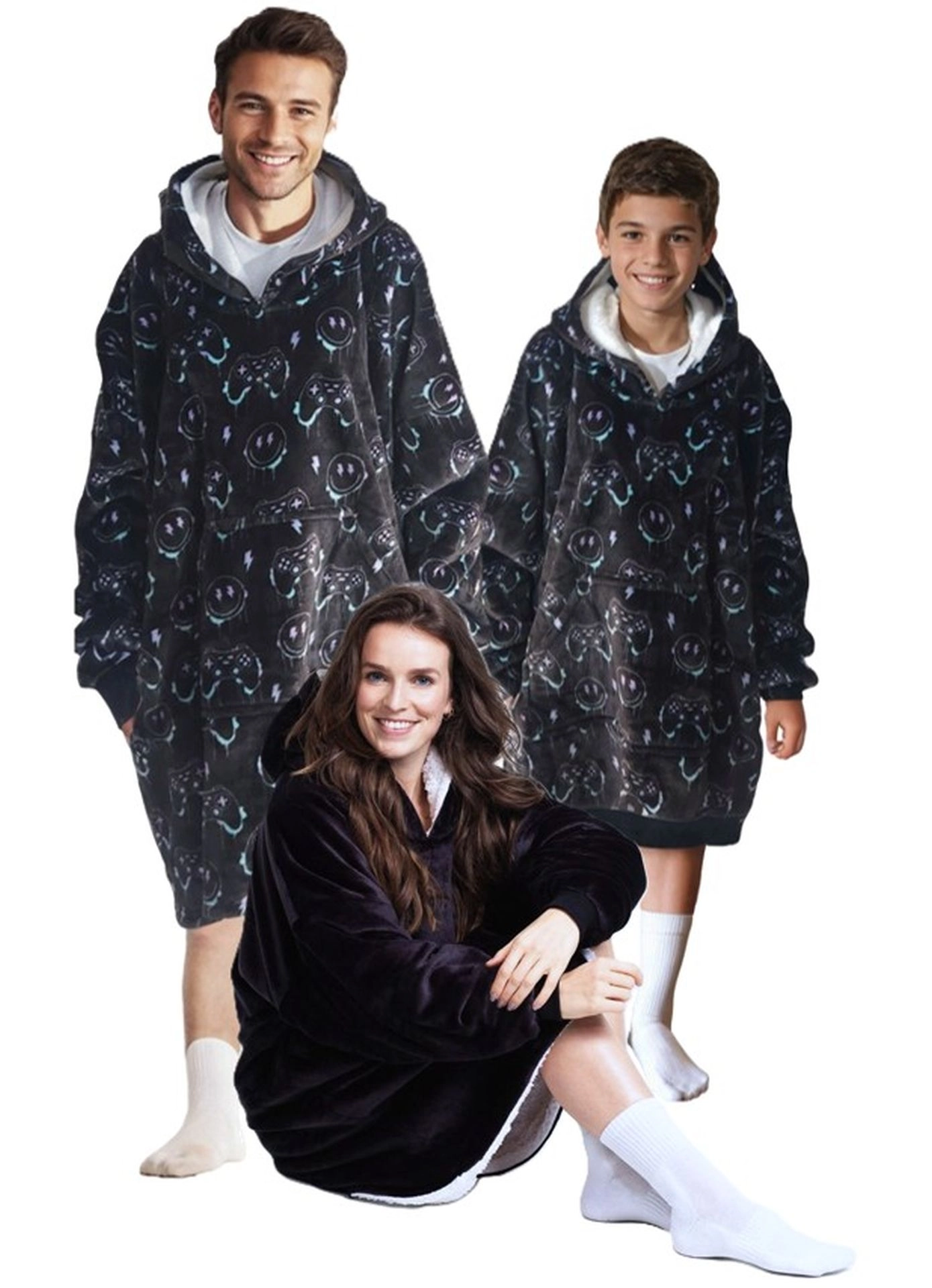 Dječja dekica s kapuljačom spaja udobnost deke i praktičnost dukserice za djecu od 7 do 12 godina. Nudi super mekani flanel izvana i pufasti sherpa flis iznutra za maksimalnu toplinu i udobnost. Zahvaljujući ogromnom prednjem džepu i velikoj kapuljači idealna je za odmaranje na kauču, igranje i kampiranje. Stilski gamerski print razveselit će svakog malog igrača.