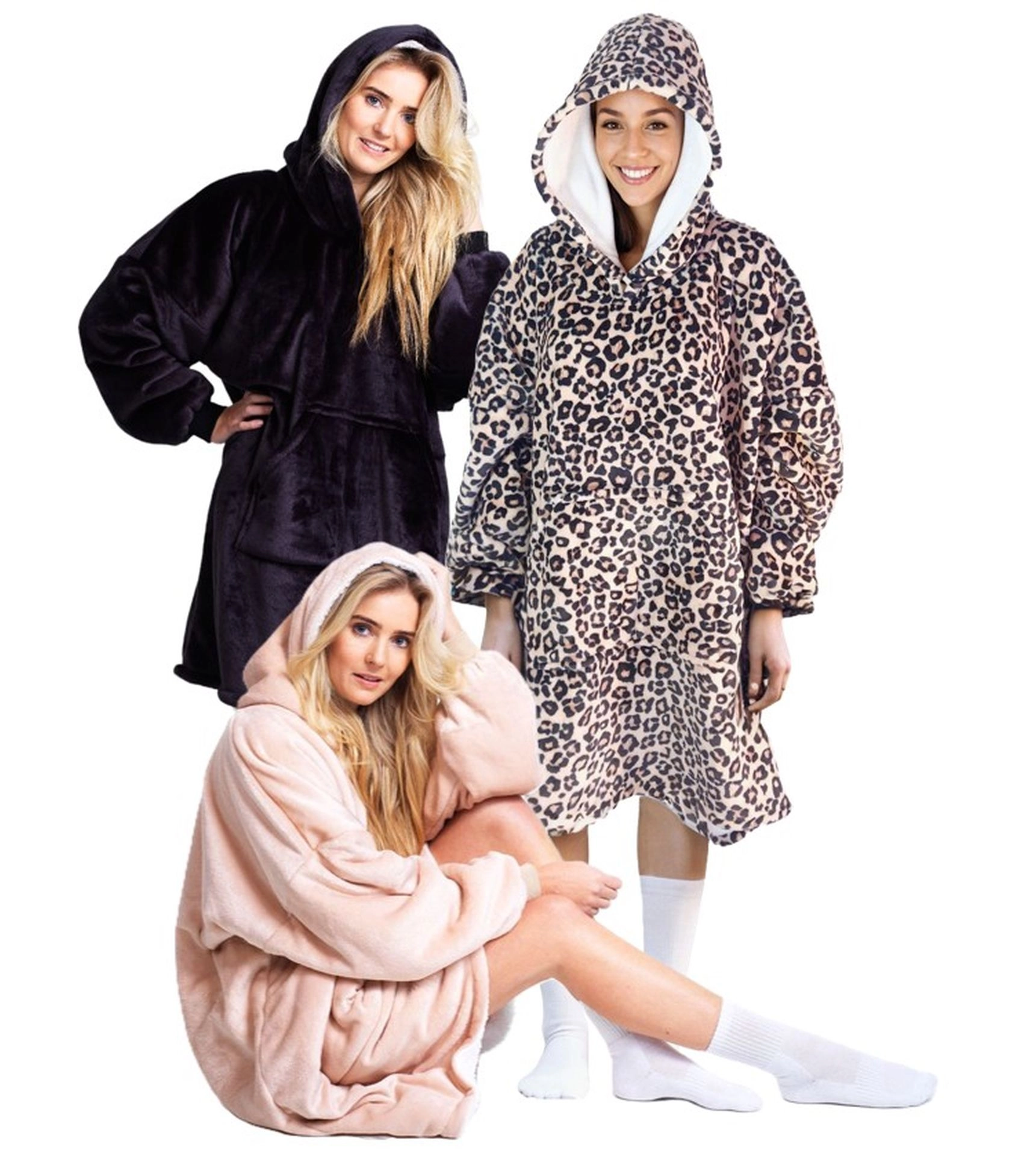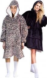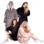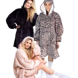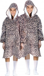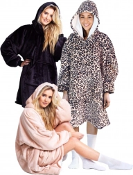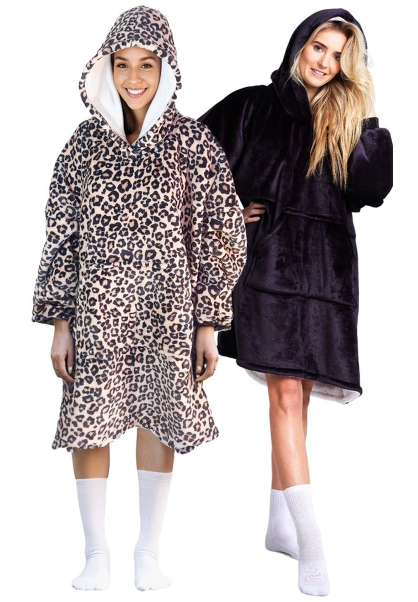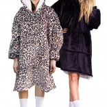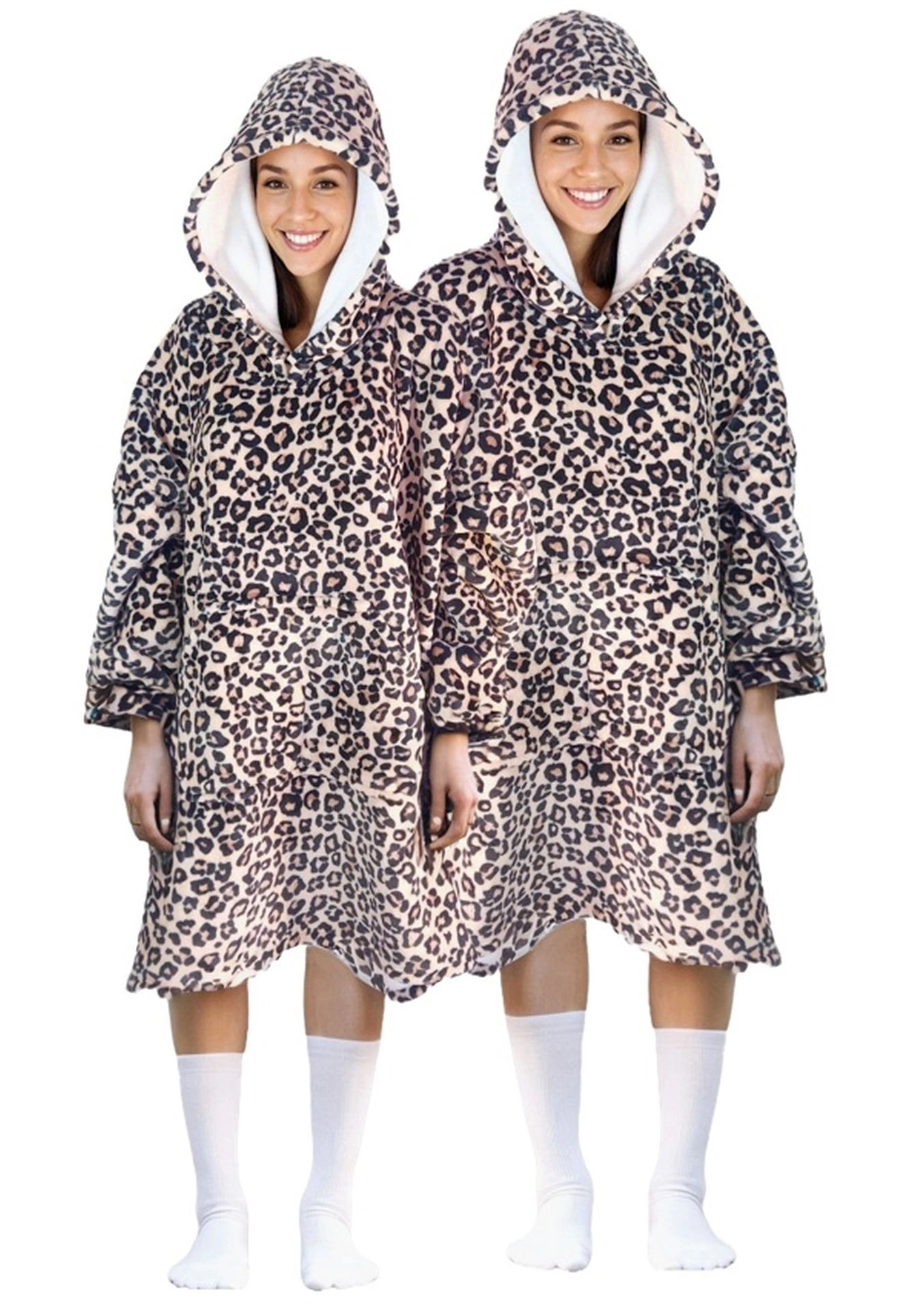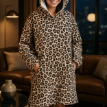 Ušuškajte se u maksimalnu udobnost – ova oversized dekica s kapuljačom spaja mekani flis izvana i topli sherpa flis iznutra. Zahvaljujući ogromnom prednjem džepu, opuštenom kroju i dužini do koljena idealna je za izležavanje kod kuće, rad za računalom i boravak na otvorenom. Stilski leopard uzorak daje vašem opuštanju poseban štih.