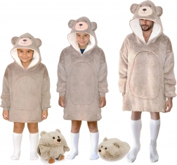 Mega udobna TV dekica s kapuljačom s motivom medvjedića od COZY NOXXIEZ grije i kod kuće i na otvorenom. Ima ogromnu kapuljaču s ušima, veliki prednji džep za ruke i izrađena je od ultra mekog flanela i toplog sherpa flisa. Oversize kroj ne ograničava pokret – idealno za kauč, rad za računalom, kampiranje i hladne večeri u vrtu.