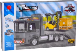 Otkrijte zabavnu građevinsku igračku za male konstruktore: detaljan model tegljača s platformnom poluprikolicom i viličara u mjerilu 1:42. Set sadrži 404 dijela, pokretne dijelove i dekorativne naljepnice za realističan izgled. Odličan izbor za razvoj fine motorike, strpljenja i kreativnosti.