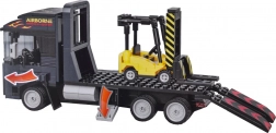 Tegljač s platformom i preklopnim rampama omogućuje ukrcaj i prijevoz viličara – baš kao u stvarnosti.