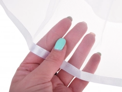 Til/mesh, lagane tkanine, plastika (štapić), metalna žica (aureola)