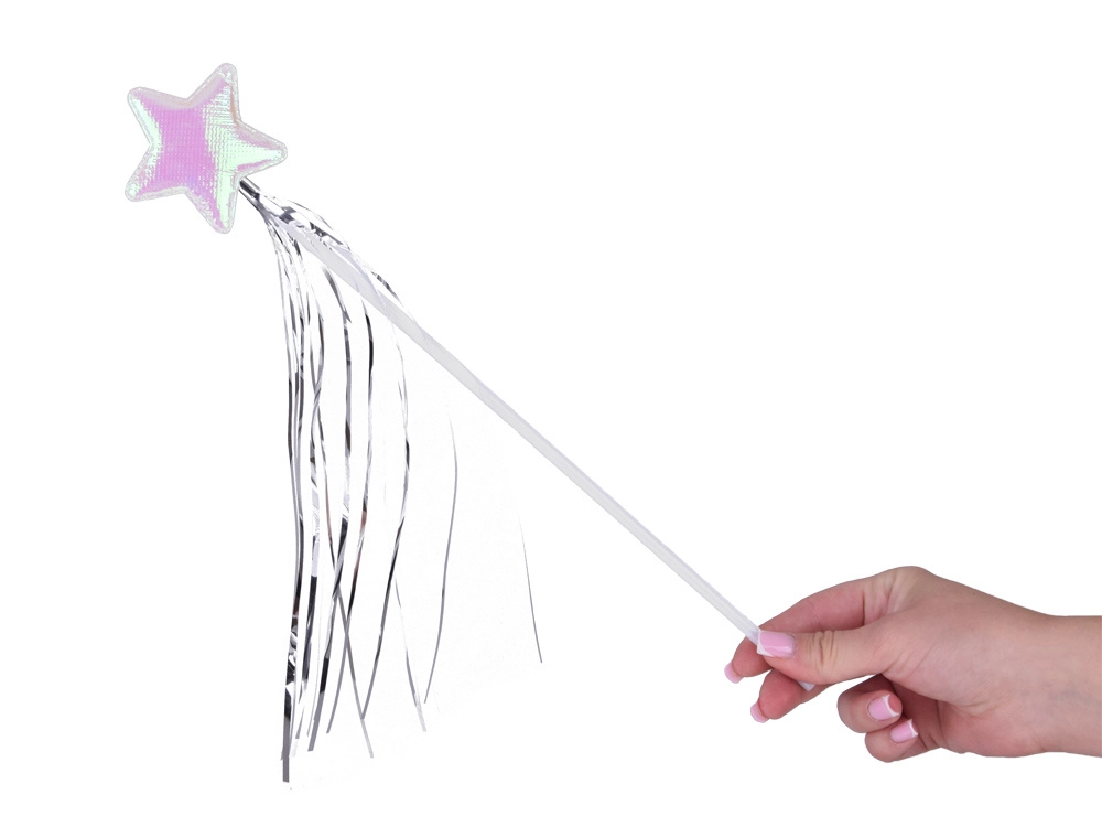 Mekana, pufasta aureola na obruču upotpunjuje nebeski izgled. Štapić s blještavom zvijezdom i srebrnim resicama potiče maštu tijekom igre i nastupa.