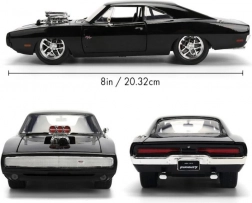 Ikonični kolekcionarski model 1970 DODGE CHARGER iz filma Brzi i žestoki u mjerilu 1:24 oduševit će ljubitelje muscle automobila i filmske sage. Nudi metalnu izradu, otvarajuća vrata, poklopac motora i prtljažnik te realistične detalje uključujući upadljiv kompresor na poklopcu motora. Duljina modela je približno 21 cm.