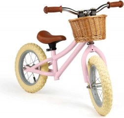 Stilizan ružičasti balansni bicikl BIGJIGS TOYS prirodno pomaže djeci razvijati ravnotežu, koordinaciju i sigurnost u vožnji. Ima čvrst metalni okvir, visinski podesivo sjedalo i pletenu košaricu za sitnice. Zahvaljujući vožnji bez pedala djeca lako ostvaruju glatki prijelaz na bicikl s pedalama. Bicikl je izrađen od kvalitetnih materijala i obrađen netoksičnim bojama, te zadovoljava europske sigurnosne norme.