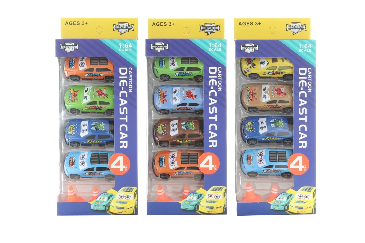 - Sadržaj pakiranja: 4 metalna auta (cca 8 cm) + 3 čunja