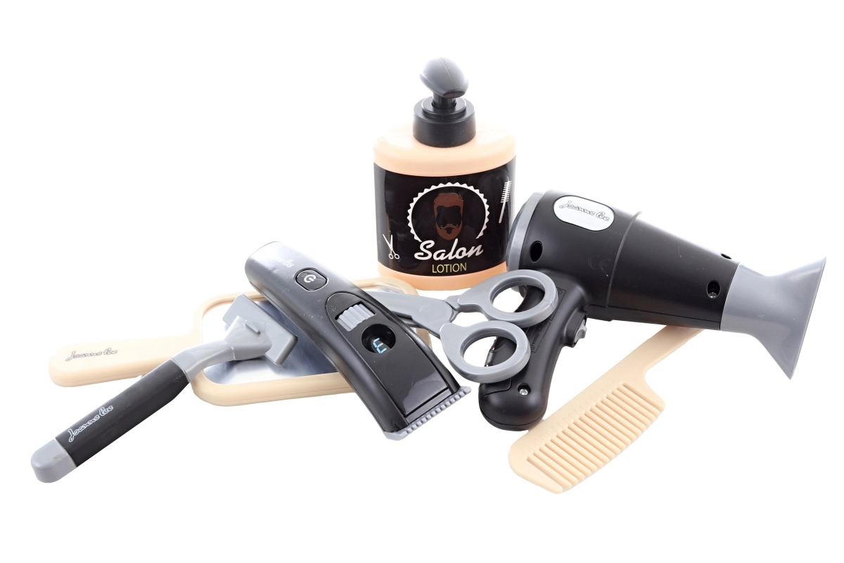 Zabavan frizerski set za male stiliste donosi sve što je potrebno za kreativnu igru. U kompletu je platneni pojas, dodaci i funkcionalno sušilo za kosu na baterije koje nakon uključivanja svijetli i ispušta zvukove. Idealno za razvoj mašte i igranje uloga za djecu od 3 godine.