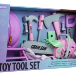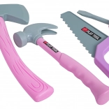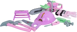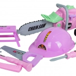 Igraći ružičasti set alata za djecu od 3 godine razveselit će male majstore bogatom opremom. Sadrži motornu pilu sa zvukovima, zaštitnu kacigu i rukavice, čekić, pilu, odvijač, vijke te stolić – mini radionicu. Izrađeno od kvalitetne plastike, sigurno i lagano za dječje ruke.