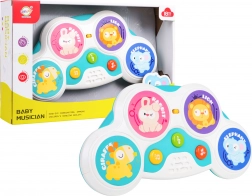 Ova glazbena igračka s dodirnim plohama sa životinjama (zec, lav, žirafa i slon) potiče djecu na otkrivanje zvukova i ritma. Suptilni svjetlosni efekti duž cijelog panela i žive boje podupiru vizualnu percepciju, dok zvukovi i melodije razvijaju sluh i osjećaj za ritam.