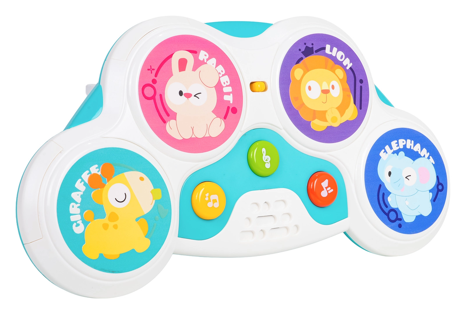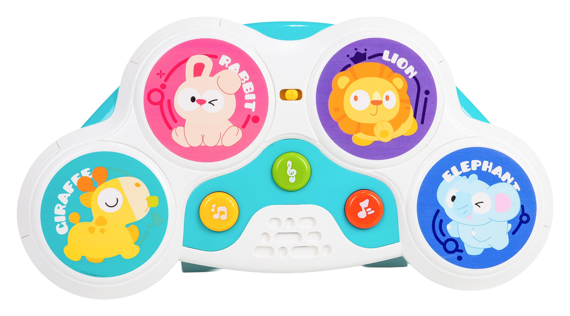 Interaktivna dodirna perkusijska ploča za djecu od 18 mjeseci donosi zabavno učenje i razvoj osjetila. Pritiskom na šarene plohe sa životinjama oglašavaju se melodije, zvukovi životinja i ritmovi bubnjeva, uz pratnju bljeskajućih svjetala. Glatka izrada bez oštrih rubova i podešavanje glasnoće osiguravaju sigurnu i ugodnu igru.