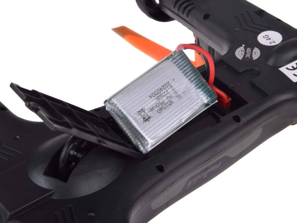 - dron/auto 2‑u‑1, upravljač, akumulator, USB kabel, odvijač, 2× rezervni propeler