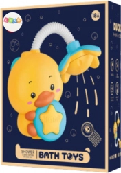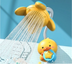 Ova inovativna kupačka igračka donosi djeci radost, a roditeljima mir. Pačić se stabilno pričvršćuje pomoću 4 snažne vakuum čašice na kadu ili pločice, a pritiskom na tipku on/off pokreće se mlaz vode iz završetka tuša. Dijete može zahvaljujući elastičnom crijevu lako usmjeravati mlaz i otkrivati čaroliju vode na siguran i razigran način.