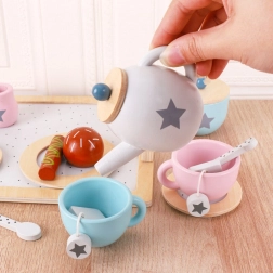 Drveni čajni i kavni servis pretvara svaku dječju sobu u ugodan kafić. Zahvaljujući čvrstoj izradi, glatkim rubovima i pastelnim nijansama, set je ne samo lijep, već i siguran za svakodnevnu igru. Djeca mogu vježbati posluživanje čaja ili kave, usavršavati hvat i komunikaciju s drugima.
