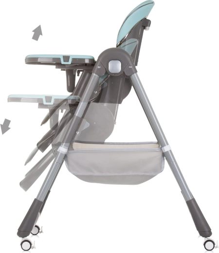 Dvostruki pladanj s gornjim uklonjivim dijelom olakšava održavanje, a pomicanje u 4 položaja prilagođava se svakoj situaciji. Igračka prečka s igračkama zabavit će bebu, dok vi možete mirno pospremiti stol. Četiri kotačića olakšavaju premještanje po stanu, a košara za odlaganje drži sve potrebne sitnice pri ruci. Nakon jela hranilicu brzo i kompaktno sklopite radi uštede prostora.