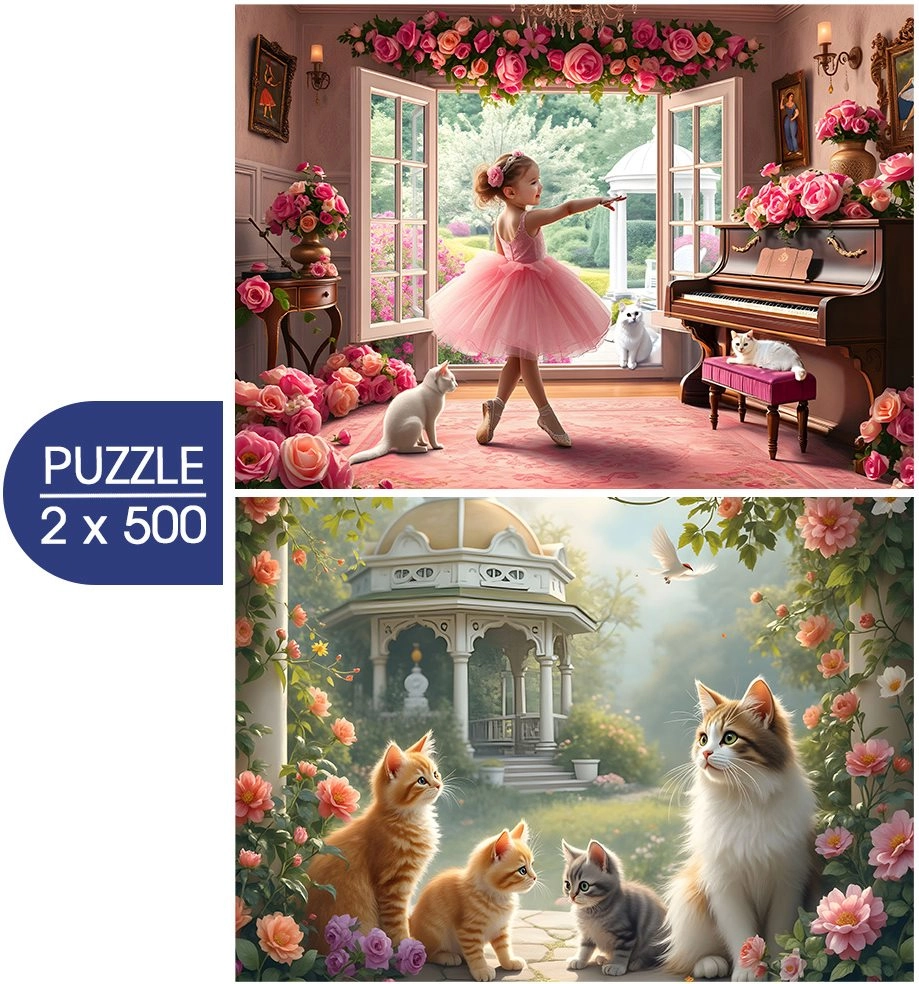 Ovaj elegantan set slagalica savršen je poklon za sve koji vole baletne motive, cvjetne scene i opuštajuće slaganje.