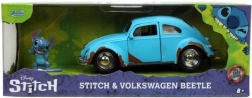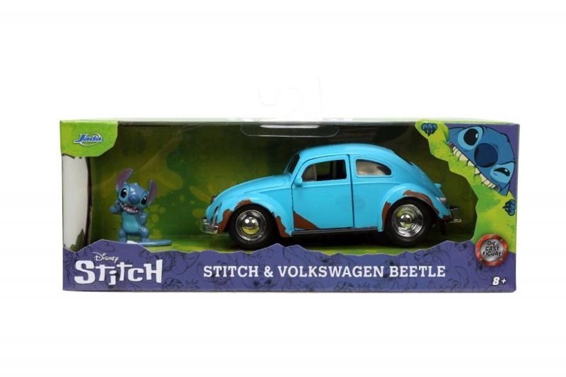 Stilski kolekcionarski model 1959 VW Beetle u mjerilu 1:32 inspiriran svijetom Lilo & Stitch. Metalna izrada s otvarajućim vratima, slobodnim hodom i figuricom Stitch u pakiranju. Idealan poklon za obožavatelje i kolekcionare, duljina modela 12,7 cm.
