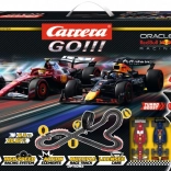 Složite svoju idealnu stazu duljine 6,3 m i dimenzija nakon sastavljanja 175 × 122 cm. U pakiranju je sve potrebno za trenutni start: dvije licencirane F1 formule (ORACLE RED BULL RACING RB21 „M. Verstappen, No.1“ 2025 i FERRARI SF-25 „L. Hamilton, No.44“ 2025), napojna jedinica, mehanički brojač krugova i par upravljača s funkcijom Turbo.