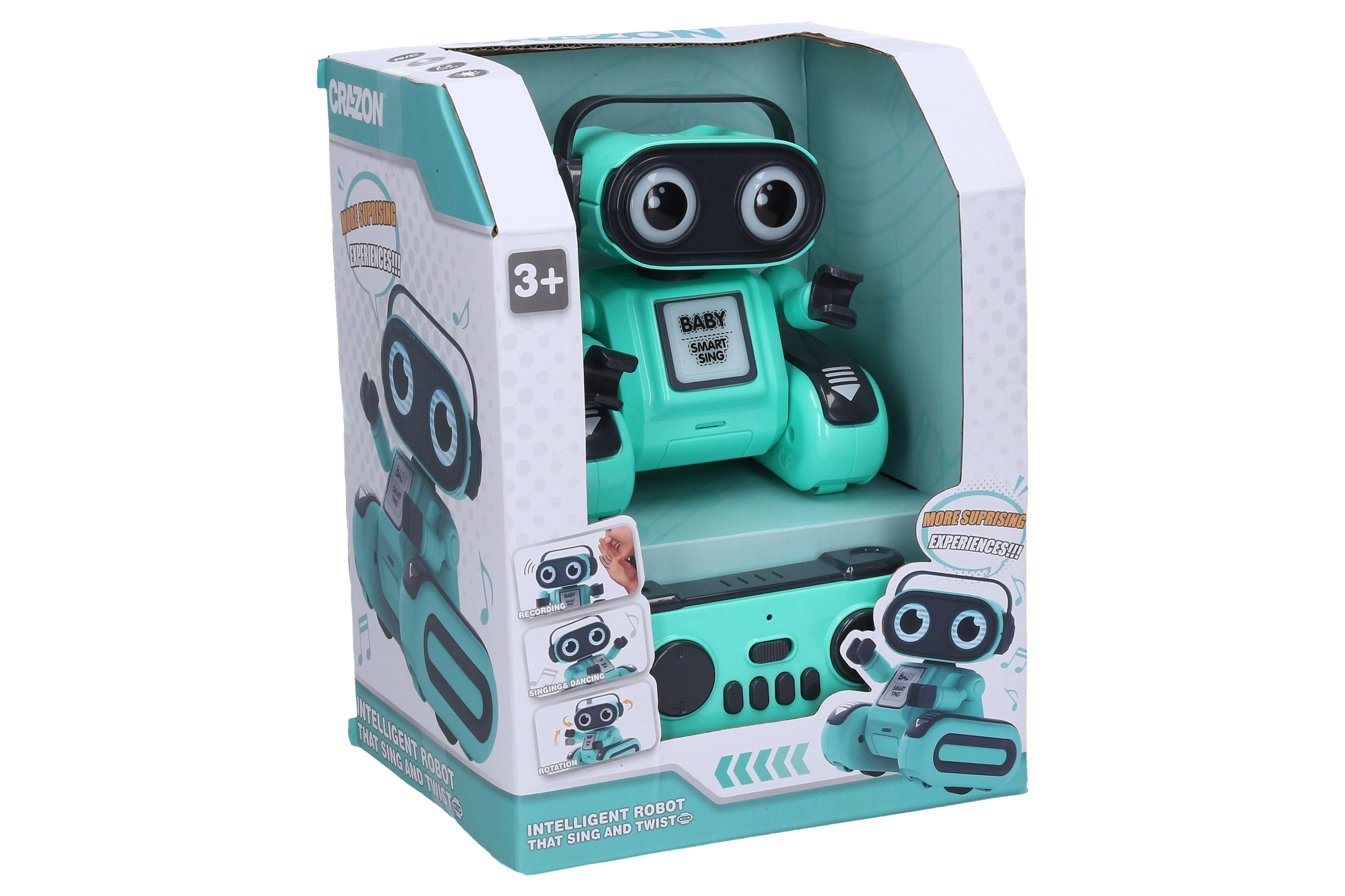 Zabavan interaktivni robot za djecu s daljinskim upravljanjem na frekvenciji 2,4 GHz donosi svjetlosne i zvučne efekte, funkciju ponavljanja glasa, ples i pjevanje. Zahvaljujući punjivoj bateriji traje do 2 sata rada i lako se upravlja naprijed, natrag i u strane.