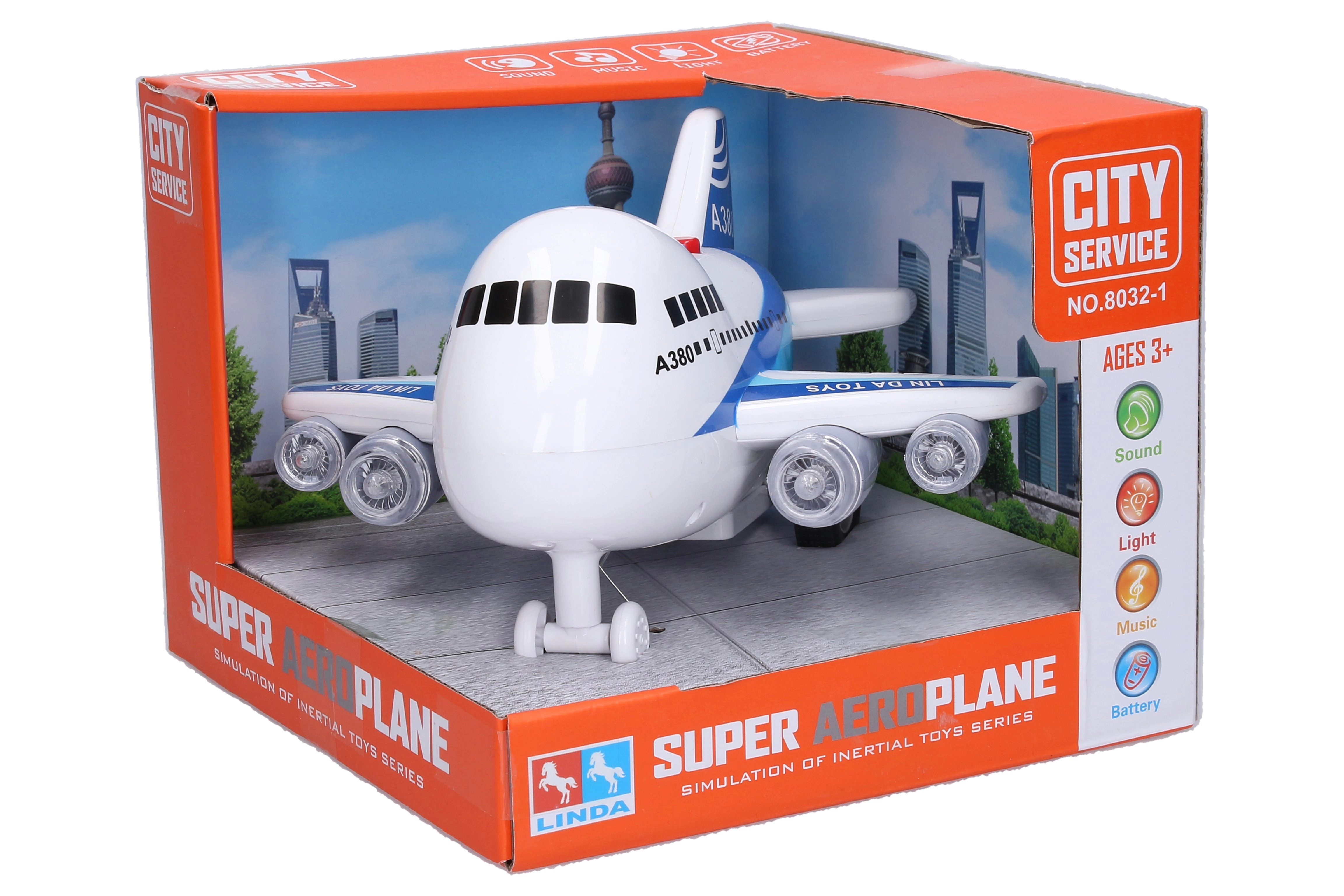 Otkrijte zabavu s realističnim avionom na inerciju koji nakon laganog guranja glatko vozi naprijed. Integrirani svjetlosni i zvučni efekti daju igri autentičnost, a djeca lako aktiviraju funkcije pomoću gumba smještenih na krovu aviona.