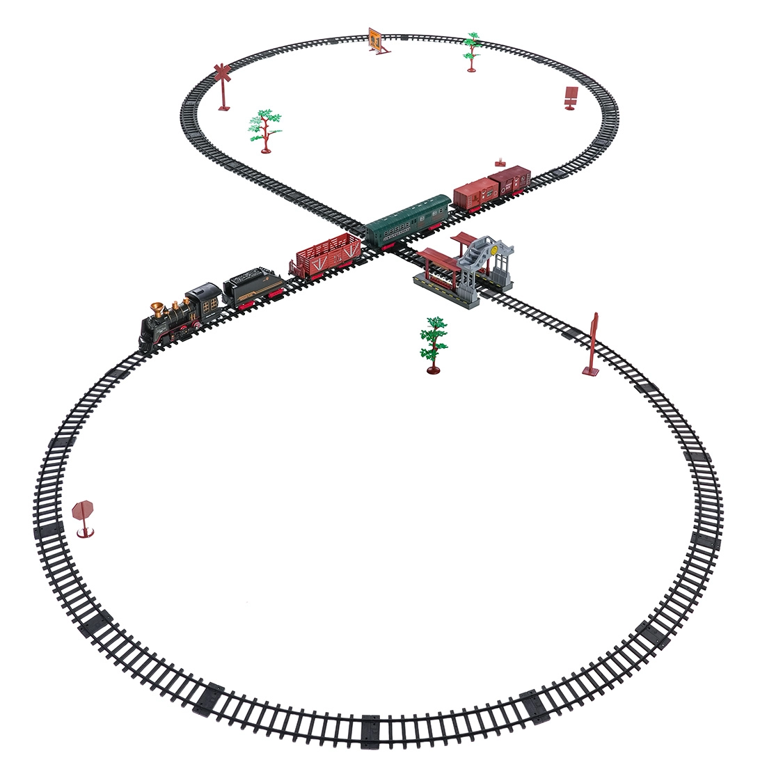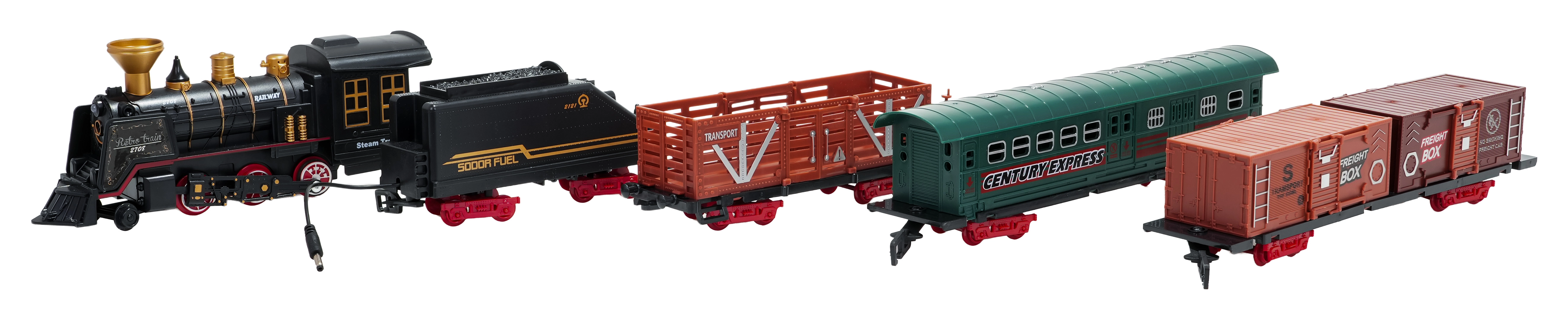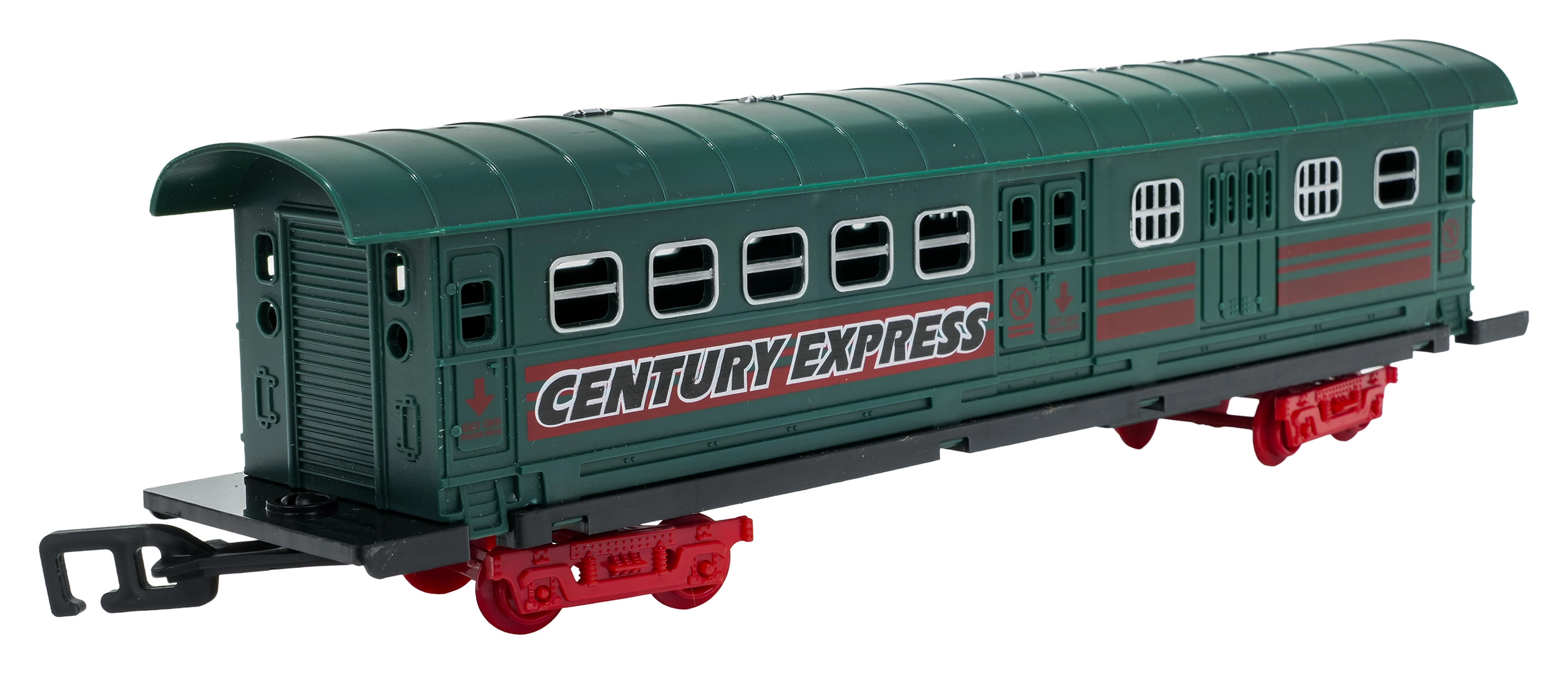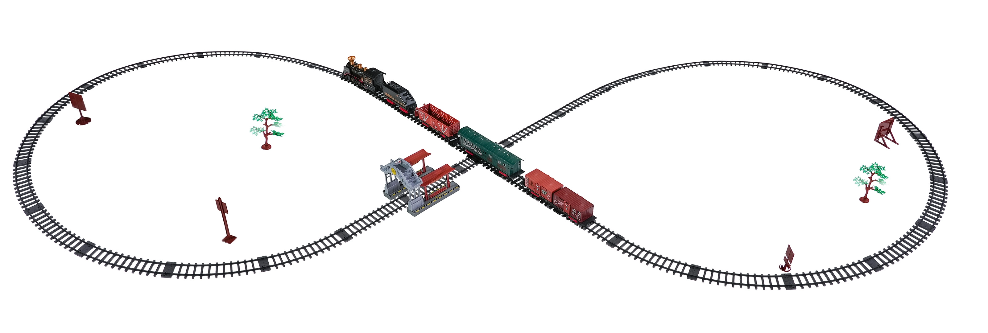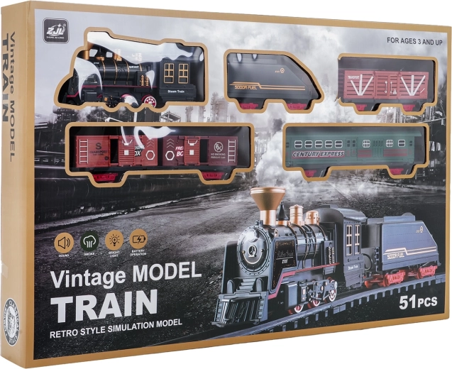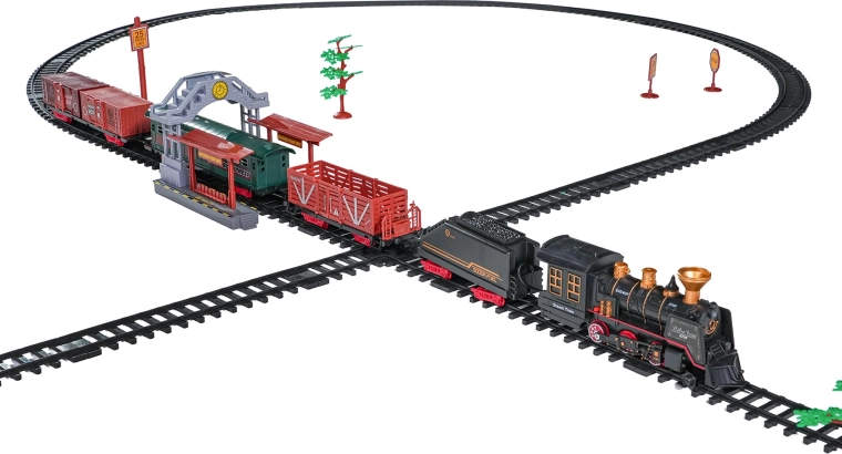Dio pakiranja je kompletna vlakovna garnitura s lokomotivom, tendrom, putničkim i teretnim vagonima, setom tračnica te tematskim dodacima kao što su stabla i znakovi. Set potiče razvoj mašte, fine motorike i strpljenja te je idealan kao poklon za male zaljubljenike u željeznice.