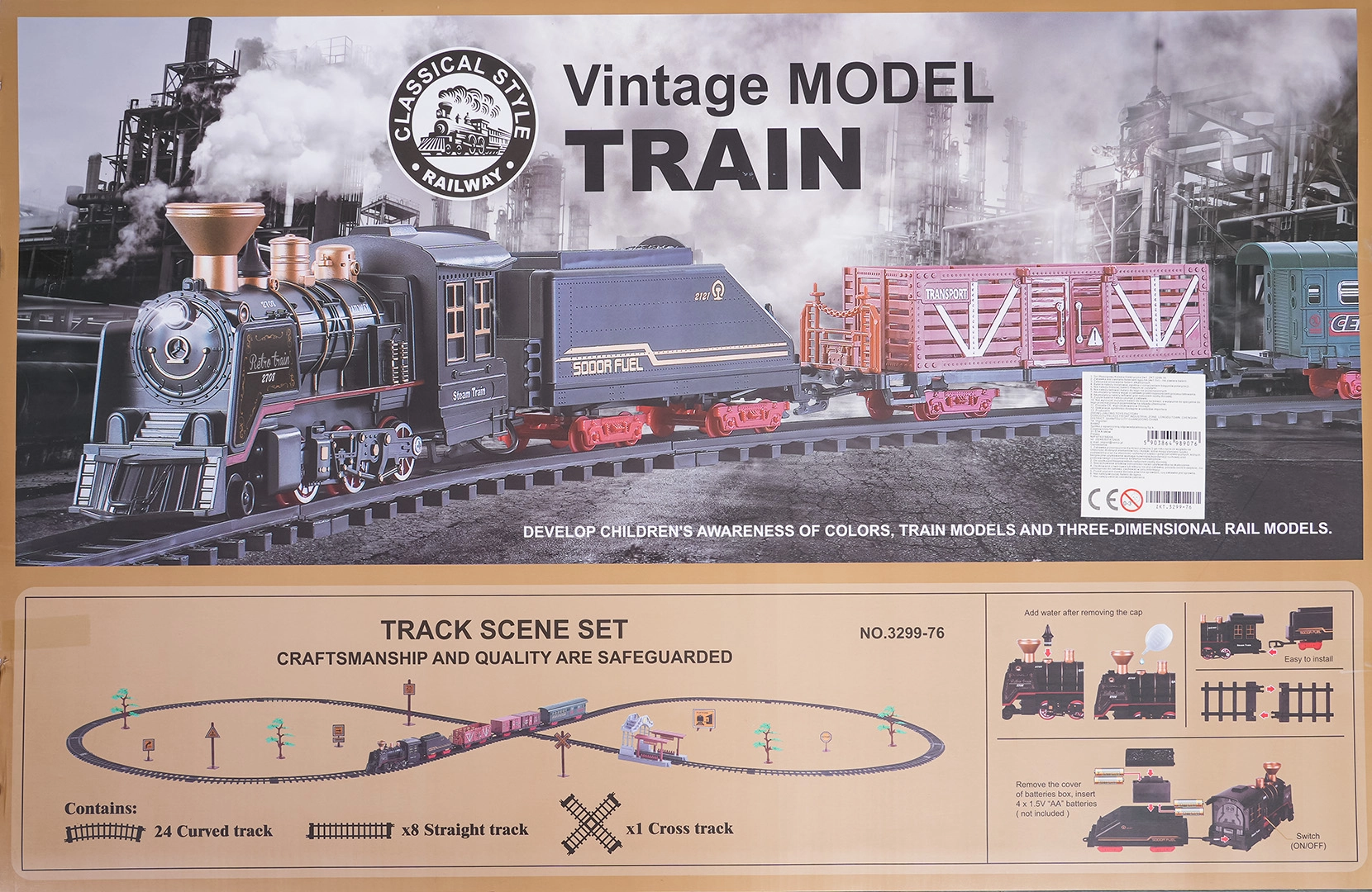 Ovaj detaljno izrađen vlakić u vintage stilu donosi djeci autentičan doživljaj vožnje. Nakon dolijevanja vode priloženom pipetom, lokomotiva pri vožnji nježno dimi kroz dimnjak, svijetli prednje svjetlo i čuju se vjerni zvučni efekti. Zahvaljujući robusnim, sigurnim i modularnim tračnicama, djeca lako slože prugu i pokreću garnituru naprijed.