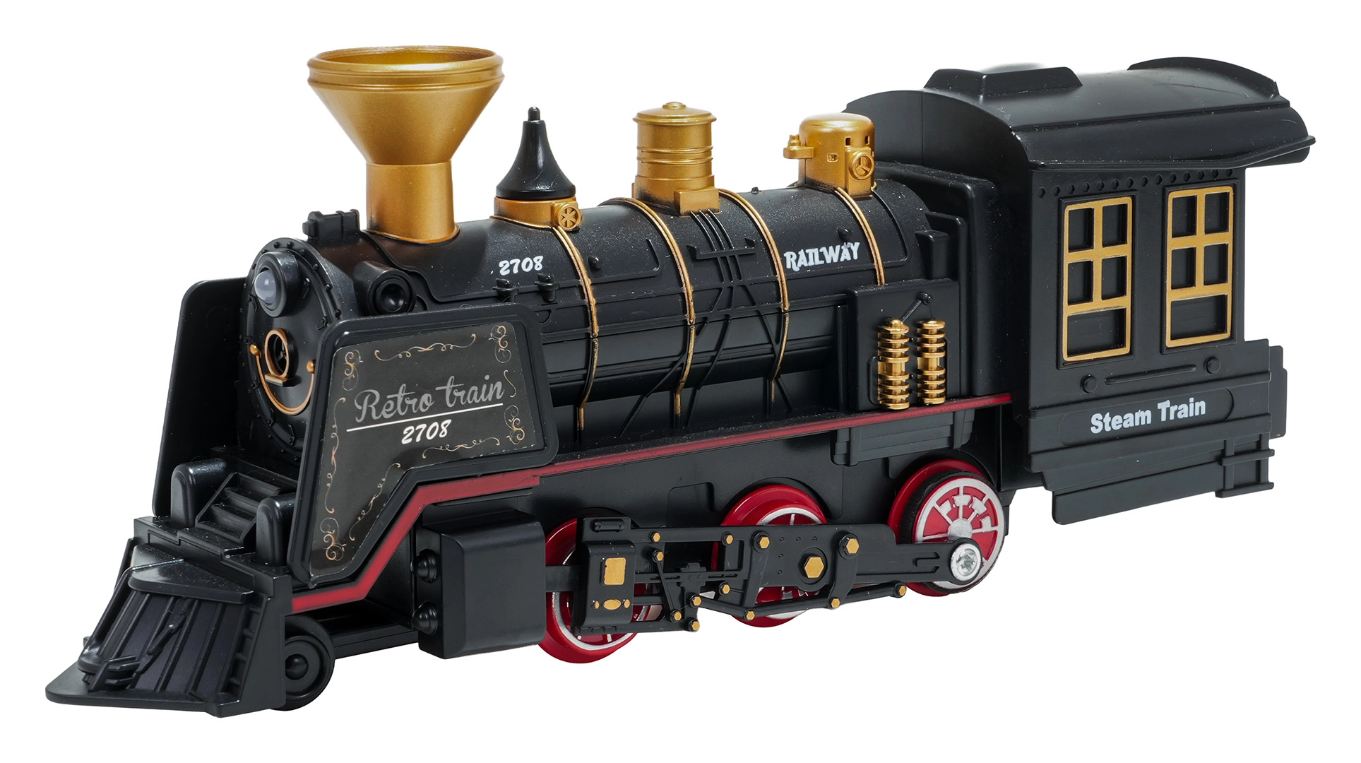 Nakon dodavanja vode priloženom pipetom, lokomotiva tijekom vožnje ispušta dim, a prednji reflektor svijetli za još autentičniji doživljaj.