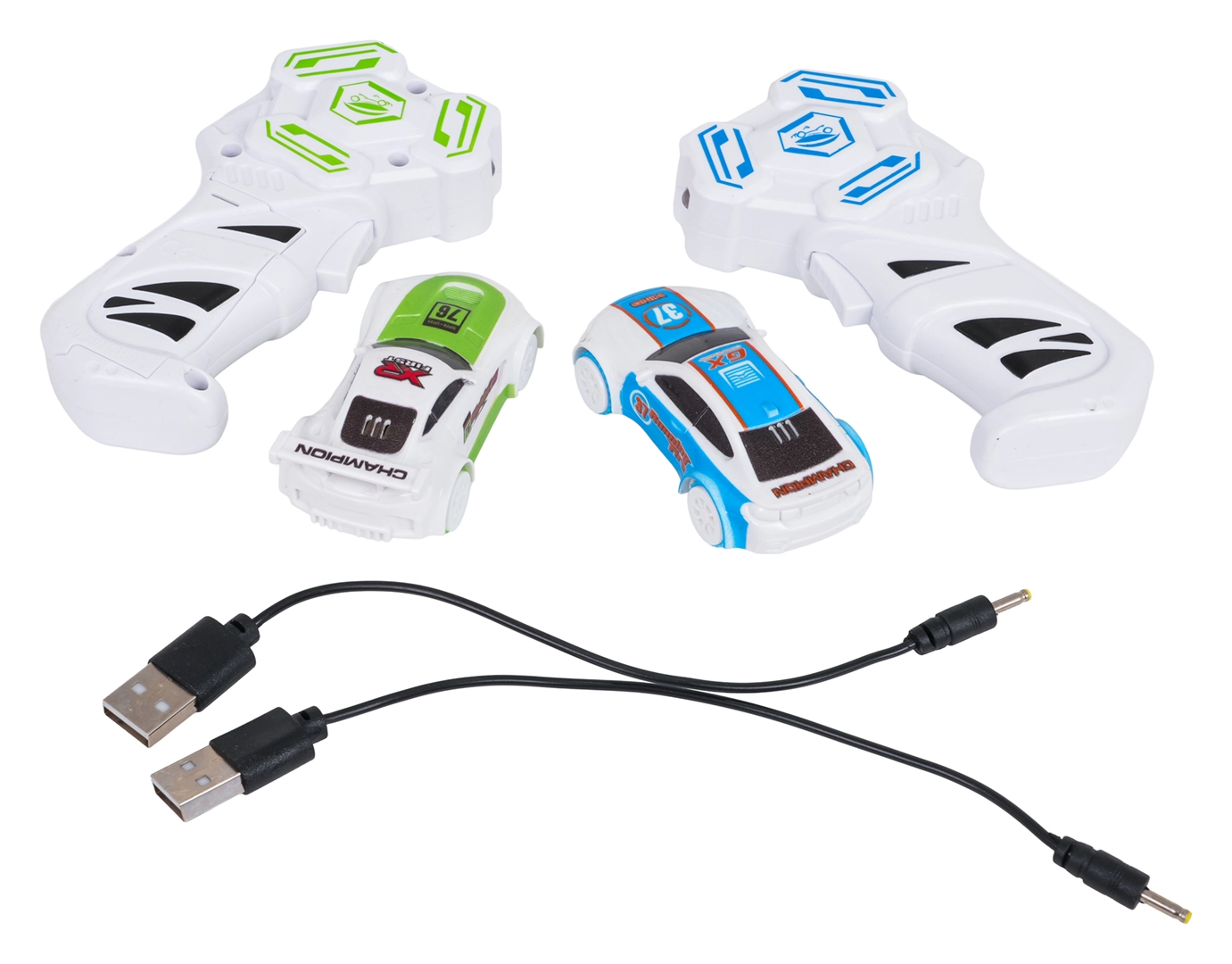 - 2 × autić, 2 × daljinski upravljač, 2 × USB kabel za punjenje, građevni dijelovi staze, upute