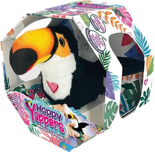Preslatki interaktivni tukan Happy Yappers donosi djeci puno zabave i poticaja. Reagira na zvuk i dodir, maše krilima, ispusta ptičje zvukove i ponavlja riječi. Zahvaljujući samozatvarajućoj narukvici dijete ga lako pričvrsti na ruku ili ruksak. Mekani sigurni pliš, USB punjenje bez potrebe za mijenjanjem baterija i funkcija automatskog isključivanja čine ga idealnim prijateljem za male istraživače.