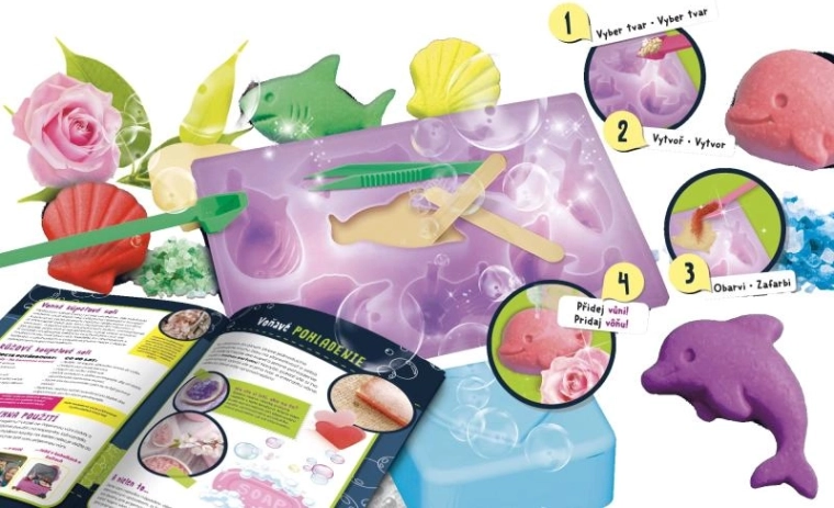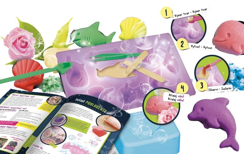 Ovaj zabavan i edukativan set omogućuje vam jednostavnu izradu originalnih sapuna s motivima morskih stvorenja. Zahvaljujući gotovim kalupima i glicerinastim pahuljicama postupak je jednostavan, siguran i brz. Dodajte obojenu esenciju i omiljeni miris te stvorite poklone ili mirisni ukras za kupaonicu.