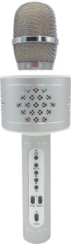 Bežični karaoke mikrofon s Bluetoothom idealan je za kućne zabave i pjevanje u pokretu. Nudi jednostavno povezivanje putem Bluetootha, AUX-a ili TF kartice, snažne zvučnike 2×3 W, podešavanje glasnoće, glazbe i jeke te dugu autonomiju do 14 sati. Srebrna izvedba djeluje elegantno i donosi sjajnu zabavu za cijelu obitelj.