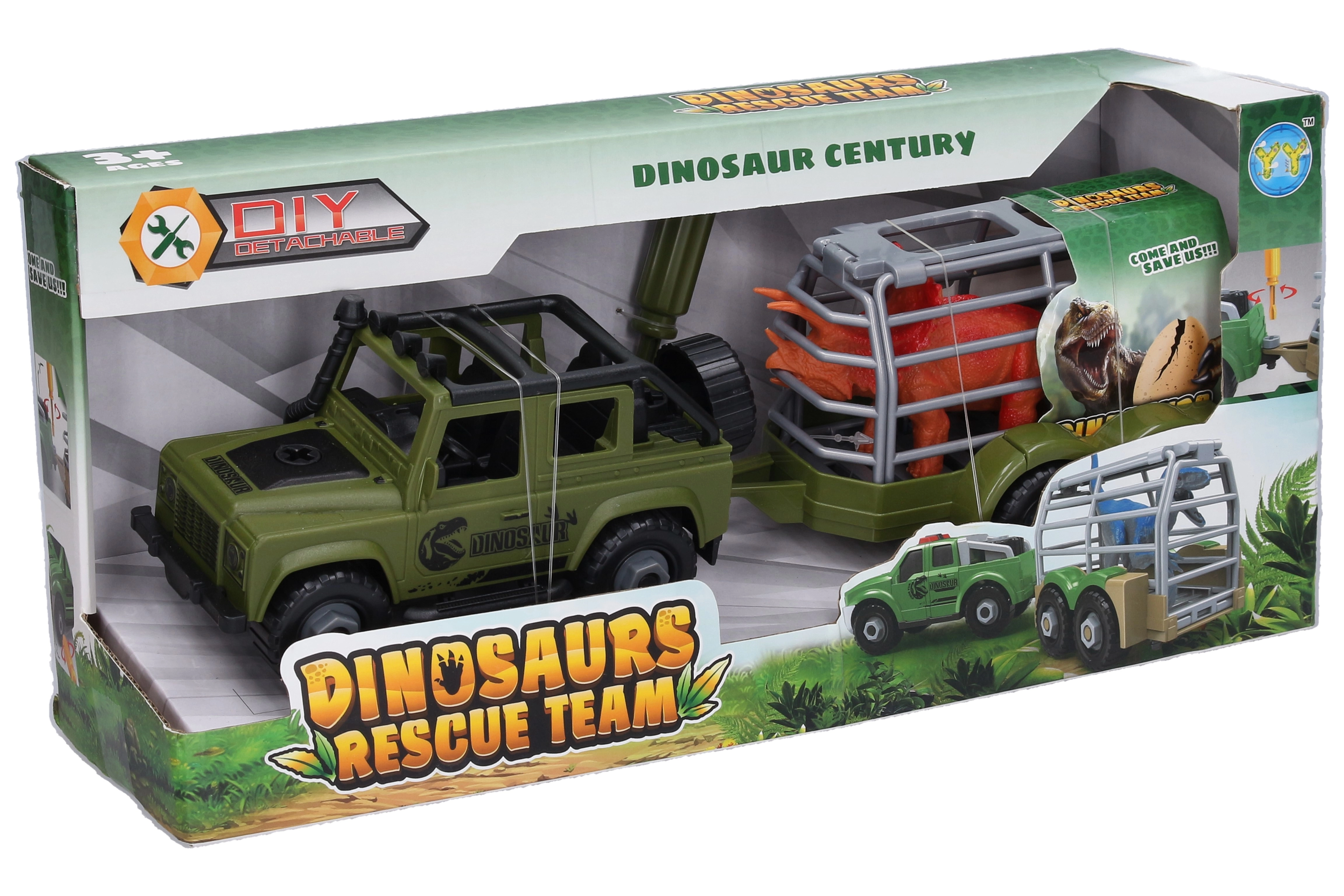 - Kompletno pakiranje – auto, prikolica, dinosaur i odvijač.