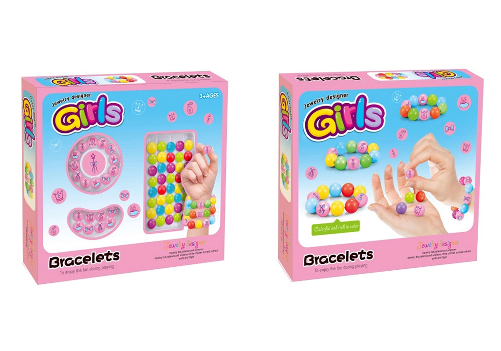 Zabavan set za male kreativce s kojim možete izraditi originalne narukvice od šarenih perlica. Sadrži miks perlica različitih boja i ružičastih perlica s motivima za ukrašavanje jedinstvenog nakita.