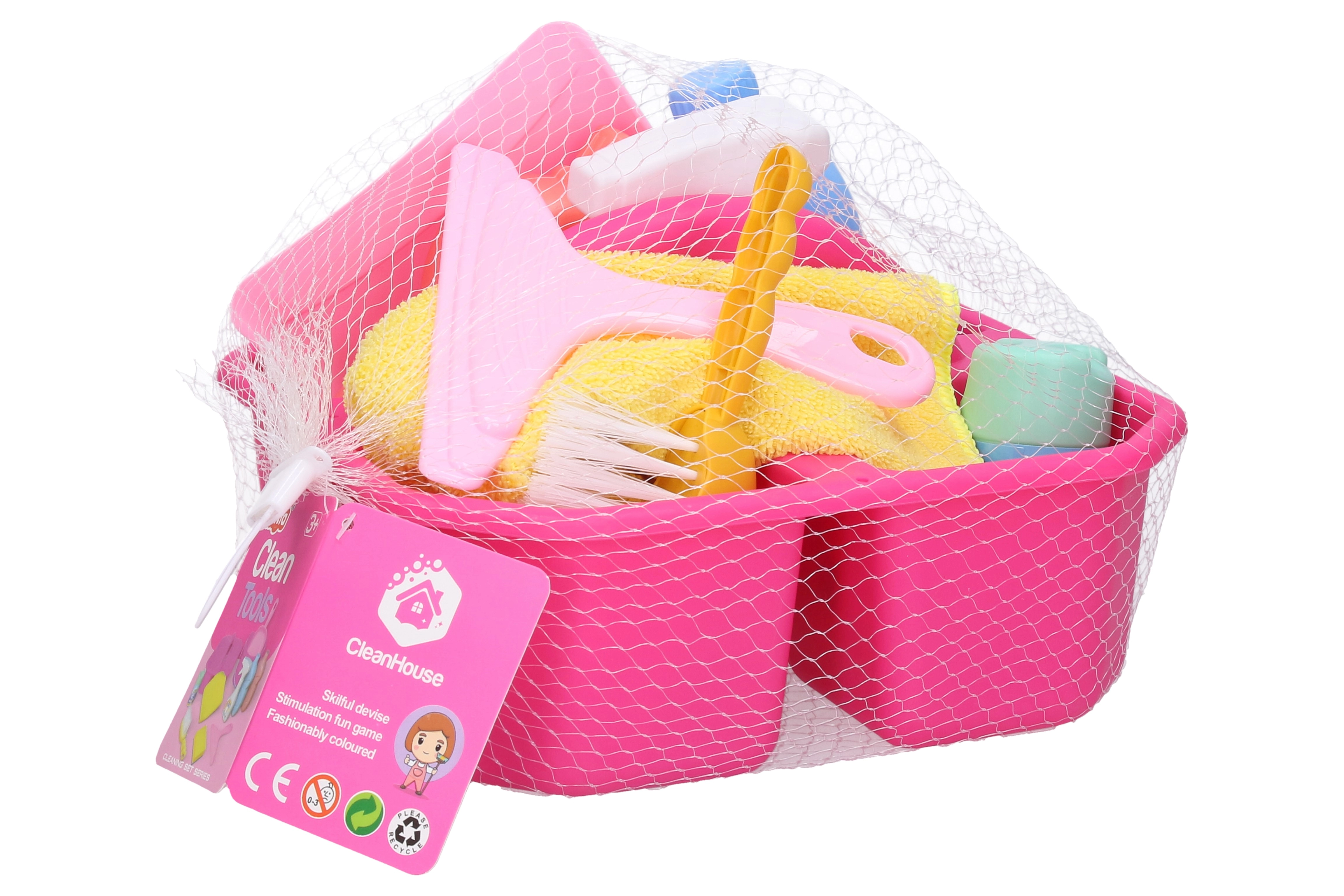 Zabavan dječji set za čišćenje od 9 komada potiče maštu i samostalnost u igri kućanstva. Set sadrži praktičnu kadicu za prenošenje i bogat pribor za male pomoćnike – lopaticu i metlicu, brisač, krpicu, spužvicu te “sredstva za čišćenje” za uvjerljivu igru. Lagana i sigurna plastika, lako odlaganje u caddy i sve uvijek pri ruci.