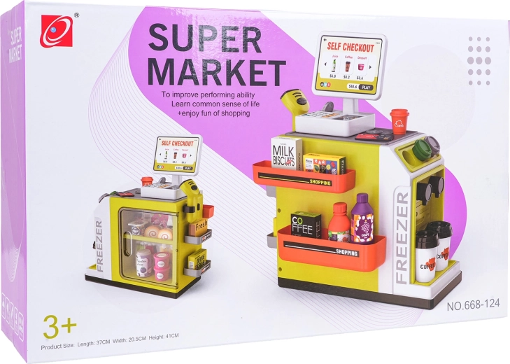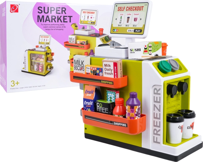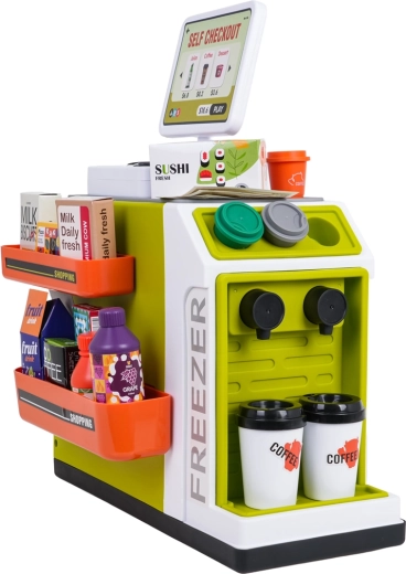 Dječji mini supermarket idealan je izbor za kreativnu igru i razvoj socijalnih vještina. Zahvaljujući samoposlužnoj blagajni sa zvukovima, svjetlosnom skeneru i simulaciji plaćanja karticom, djeca uživaju autentično iskustvo kupovine. Šarene police, bogata oprema i otvorivi hladnjak/zamrzivač potiču maštu i uče osnovama računanja, razvrstavanja i igre uloga.