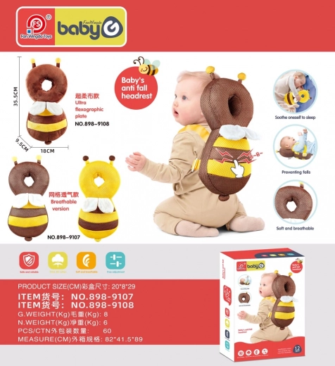 Otkrijte praktičnog pomagača za razdoblje učenja hodanja. Ovaj zaštitni jastučić u obliku pčelice ublažava padove i pomaže zaštititi djetetovu glavicu od udaraca. Zahvaljujući maloj težini i ergonomskom dizajnu ne ograničava kretanje, a dijete ga bez poteškoća nosi kao mali ruksak.