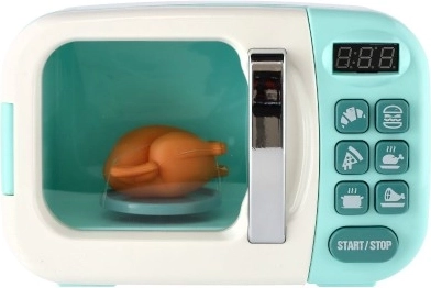 Predstavljamo vam dječju mikrovalnu pećnicu koja donosi realističnost u svijet vašeg malog kuhara. Ovaj interaktivni uređaj omogućava djeci da uključe pećnicu i promatraju kako se piletina unutra rotira za 360°. Svjetlo se automatski pali pri pokretanju i gasi kada se vrata otvore. Zvučni efekti obogaćuju cjelokupni doživljaj igre.