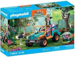 Šareni terenski automobil PLAYMOBIL iz edicije Animals & Friends poziva djecu na avanturističku vožnju kroz džunglu. U vozilo stanu četiri figurice, a svoje mjesto imaju i preslatke životinje – panda, lemur, koala, noj i kakadu. S bogatom opremom, hladovinom lisnatog stabla i ptičjim gnijezdom potiče maštu i razvija kreativnu igru.