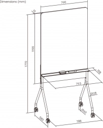 Dimenzije 119 × 79 cm s okomitom orijentacijom nude dovoljno prostora za bilješke, skice i zadatke, a pritom ne zauzimaju mnogo mjesta u prostoriji. Integrirana polica za odlaganje drži markere i brisač uvijek pri ruci.
