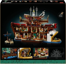 Dio seta je 10 anime minifigurica – Luffy, Zoro, Nami, Usopp, Sanji, Zeff, Garp, Helmeppo, Koby i Mihawk – kao i mnoštvo dodataka, poput hrane i pića, transpondera (puž-telefon) i Mihawkova broda. S 3402 dijela i dimenzijama otprilike 35 × 54 × 27 cm riječ je o iznimnom komadu za obožavatelje pirata, ljubitelje mange i odrasle modelare.