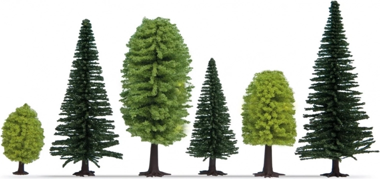 Zahvaljujući različitim visinama stabala (cca 5–14 cm) lako ćete stvoriti razvedenu siluetu šume koja osvaja na prvi pogled. Set je prikladan za mjerila H0 i TT te predstavlja idealnu osnovu za idilične prirodne scenografije.